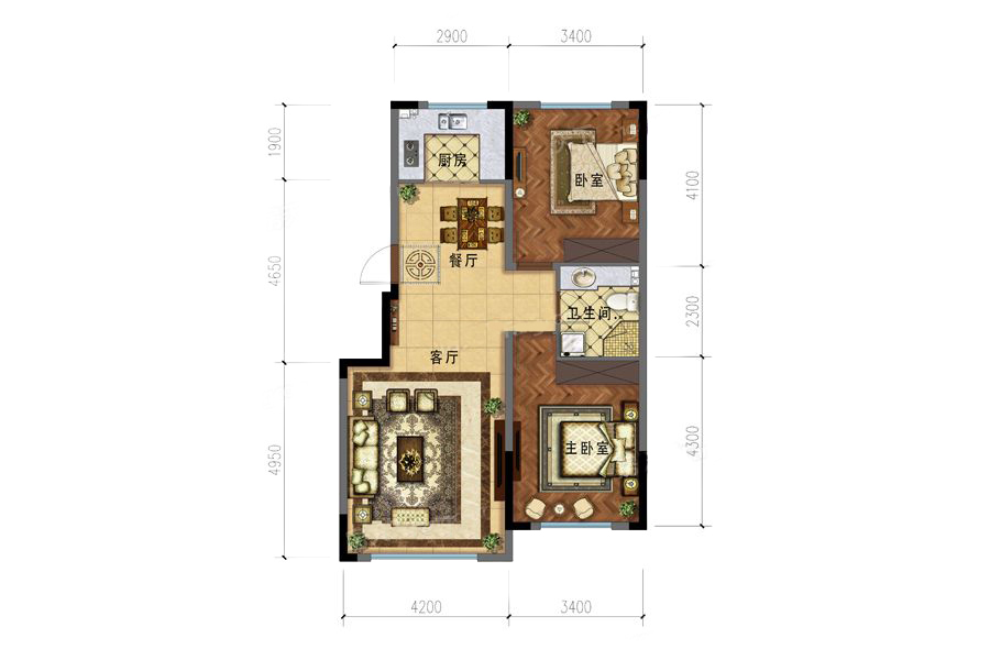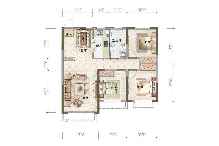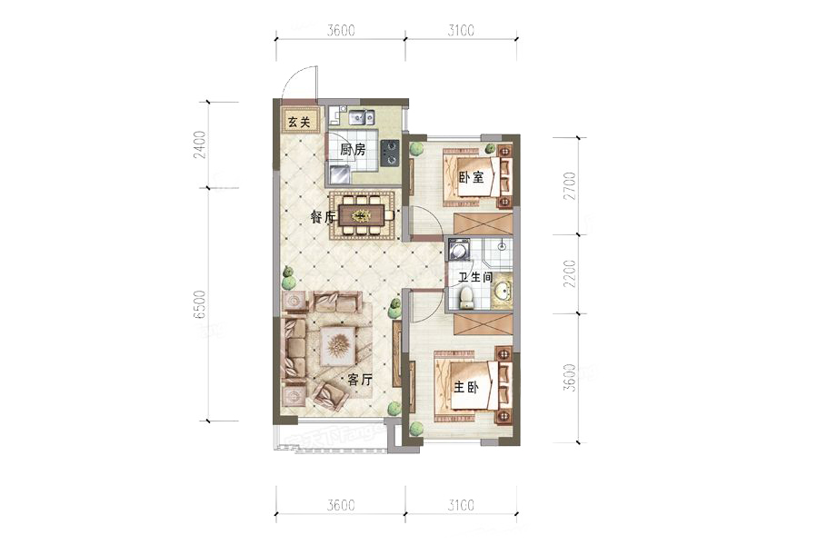 各个空间户型方正,方便室内家具布置;卫生间没有对外窗户,可通过加装排风机改善通风除湿;整个户型空间布局合理,做到了干湿分离、动静分离,方便后期生活;各个功能区的尺寸比例规范,布局合理,能很好地满足日常功能需求,整体空间开阔,采光充足,居住舒适度好;公摊高于15%且低于25%,符合住宅公摊正常范围。