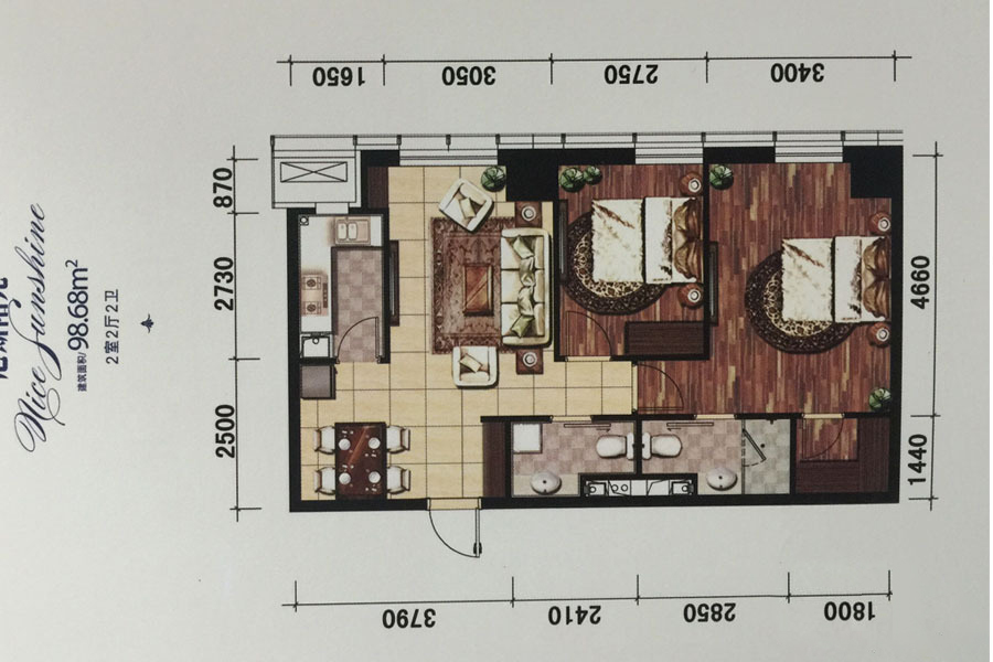 华府新天地2室2厅1厨1卫 总价待定