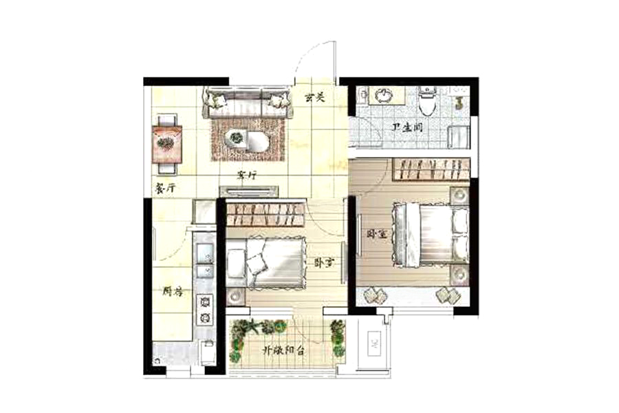 颐盛壹号公馆2室2厅1厨1卫 总价待定