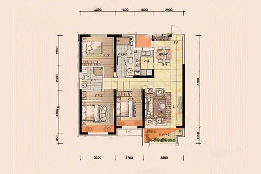 颐盛壹号公馆3室2厅2厨1卫 总价待定