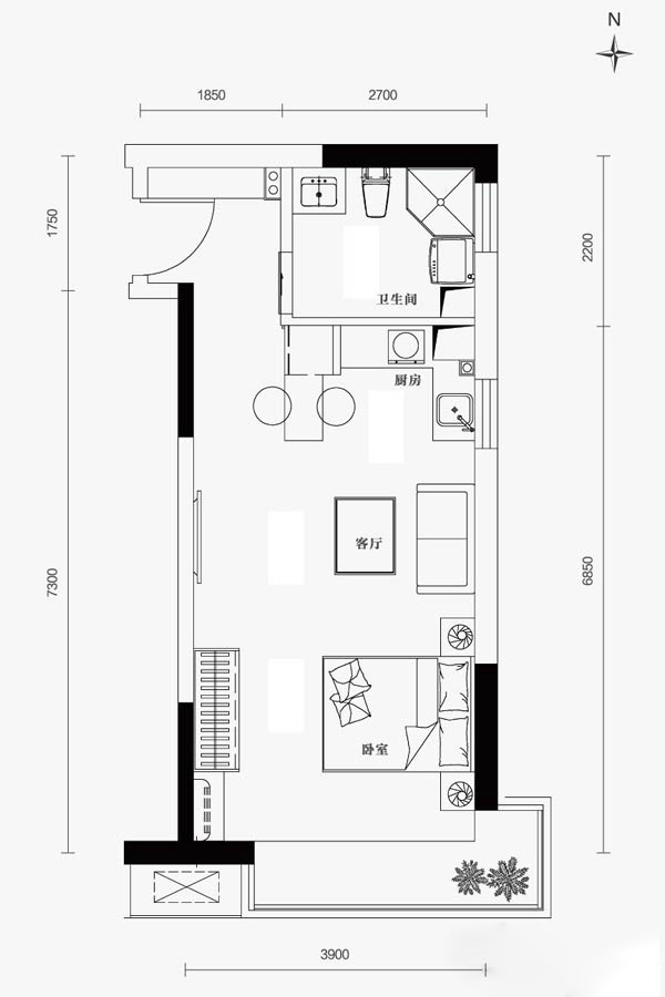 中粮隆玺祥云1室1厅1厨1卫 总价待定